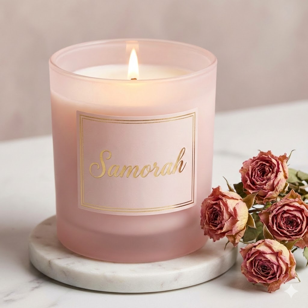 Embrace the soft elegance of Samorah Blush. This delicate pink candle fills your space with the romantic aroma of fresh-cut peonies and wild roses. Finished with a whisper of white musk, it is the perfect companion for a relaxing self-care evening or a cozy night in.